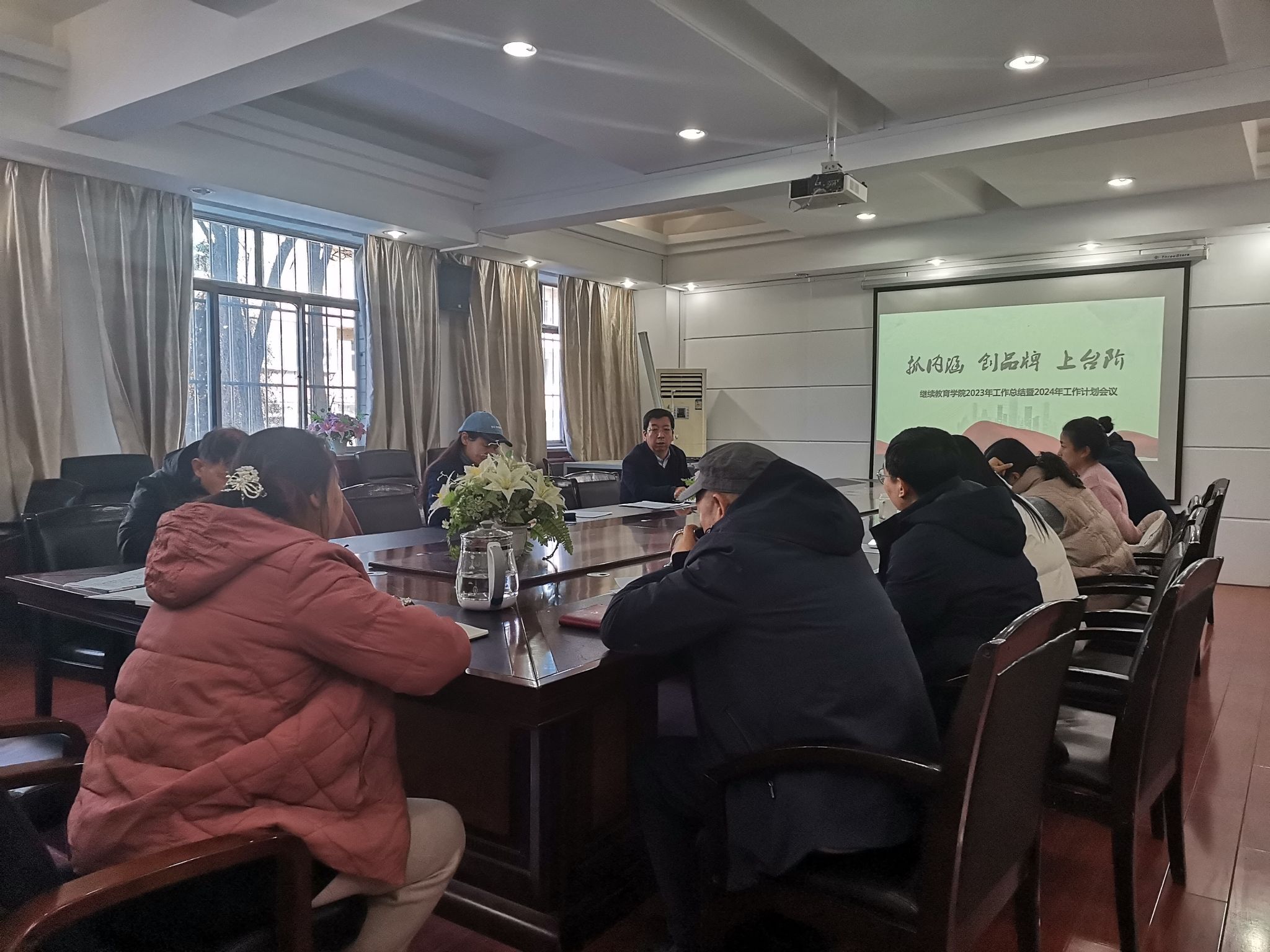 接着李焕梅、李忠卫副院长分别介绍了2024年学院学历继续教育、非学历继续教育的工作思路和工作计划。2024年学院将以习近平新时代中国特色社会主义思想为指引,全面贯彻党的二十大精神,坚持转型发展基本思路,在严格规范办学,加强师资、课程、平台等内涵建设,开展教研教改,推进四大培训中心(基地)建设,完善社会培训体系等方面狠抓落实,“抓内涵 创品牌 上台阶”,不断提升教育教学水平,走出我校继续教育的高质量发展新路。