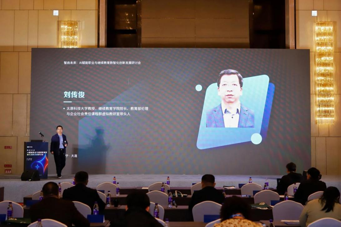 4月23日—25日,由中国成人教育协会指导,辽宁师范大学太阳成集团tyc41183和沈阳建筑大学太阳成集团tyc41183联合主办,青书学堂和字谱承办的“智启未来——AI赋能职业与继续教育数智化创新发展”研讨会在大连成功举办。研讨会聚焦人工智能+职业与继续教育、智能创新、规范与提质等核心议题,来自中国成人教育协会、各高校太阳成集团tyc41183及企业的相关领导、专家和负责人参加了本届研讨会。我院院长刘传俊教授出席此次会议并受邀为大会作“思政引领、AI 赋能:‘职业伦理与企业社会责任’数字化课程资源建设的思考”的主题报告。