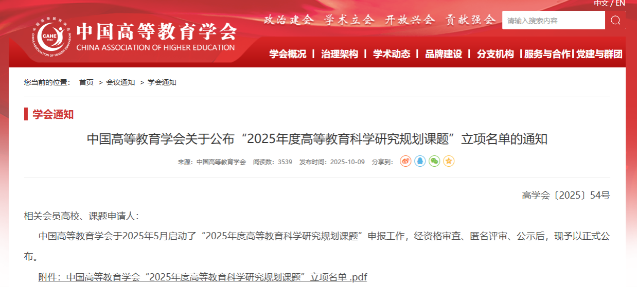 中国高等教育学会于2025 年 5 月启动课题申报,经过严格的资格审查、匿名评审、公示等流程遴选后,予以正式公布。近年来,我院始终以提升教学质量为核心,持续推进教学改革。面对当前继续教育中存在的资源分布不均、个性化教学支持不足等问题,结合《教育强国建设规划纲要(2024—2035 年)》中关于发挥人工智能赋能教育变革的重要指引,课题聚焦构建AI 个性化教学体系,进一步为学院教学改革注入新动力,助力终身教育体系建设与学院教学质量提升。