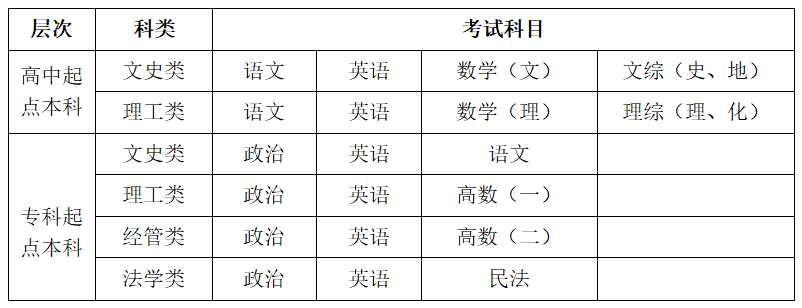 五、成人高考考试时间及考试科目