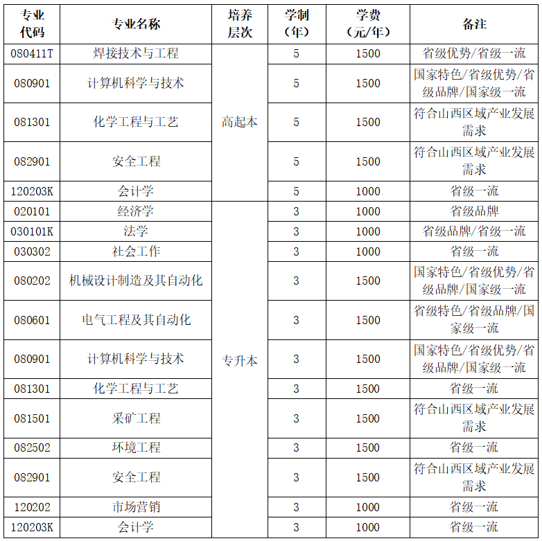 2024年我校成人高等学历继续教育在山西省各市(县)范围内招收学生。招生专业、层次包括: